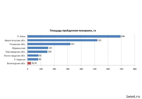 В сравнении с регионами СЗФО по итогам пожароопасного сезона Вологодская область имеет наименьшую площадь лесных пожаров.