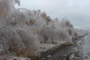 Из-за ледяного дождя, или ожеледи были повреждены основные лесообразующие породы – сосна и береза.